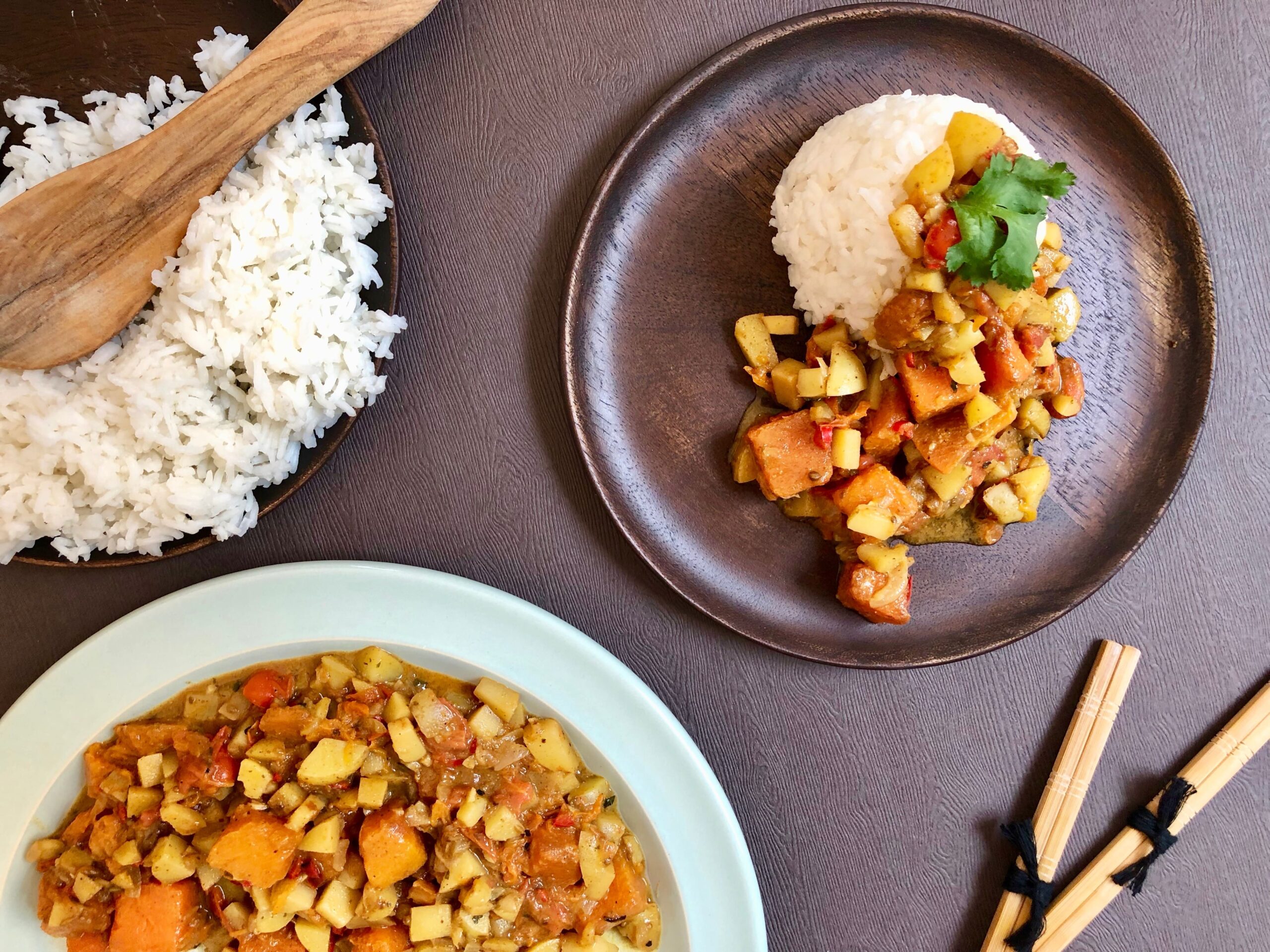Curry aloo met aardappel en pompoen